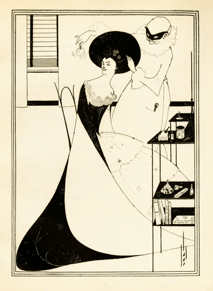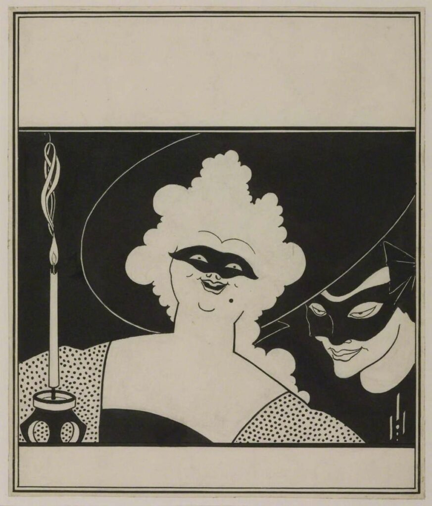 Beardsley’s grotesque, scandalous, and immoral subject matters gave him the attention he desperately desired. The bulk of his illustrations depict women, many of whom embodied deviance and corruption in the eyes of the conservative Victorian reviewer. Beardsley drew upon the taboos of the era, forming a subversive commentary on societal norms. Synchronous to his short working life, the feminist ideal of the ‘New Woman’ was salient, a term coined by the novelist, Sarah Grand, in 1894. These ‘New Women’ challenged values already being attacked by fin-de-siècle modernism and the societally deviant dandies of the Decadent movement. Women demanding social opportunities and emancipation were boxed into the same category as prostitutes or the promiscuous. Rather than attacking such unruliness, Beardsley mocks the ludicrousness of a dated categorization, gaining attention whilst revealing his progressive mindset. Despite backlash, gender was being redefined, and Beardsley harnessed such change as a platform for recognition and contentiousness.