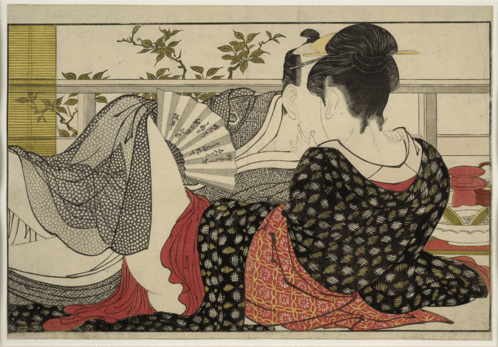His hard-edged line forced his work to become visually aggressive. Contradictions weave throughout, blending elegance, classicism and purity of line while meshing between the scandalous and perverse. The result is a definite visual power. The line block technique and Japanese influence remain a thread throughout Beardsley’s work, allowing for its mass reproduction at a time when printed culture was particularly prevalent. Beardsley pushed back against the self-proclaimed cultural superiority of the British art scene, lacing ironic and mocking messages into his work. In contrast, Japanese artistic practice didn’t acknowledge erotic or sexual themes in the same disgust as the Victorian Brit. Distinct parallels can be drawn both in style and motif to artists such as Kitagawa Utamaro or Katsushika Hokusai. Prints such as The Dream of the Fisherman’s Wife (Hokusai) or Lovers in the Upstairs of a Teahouse (Utamaro) portray undisguised sexualised themes far more shameless than those of Beardsley and almost a century earlier.