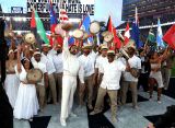 The stage obeys, they dance. It is theatrical, a musical number refracted through diasporic memory: perhaps West Side Story, perhaps In The Heights. The American Dream feels staged within reach.