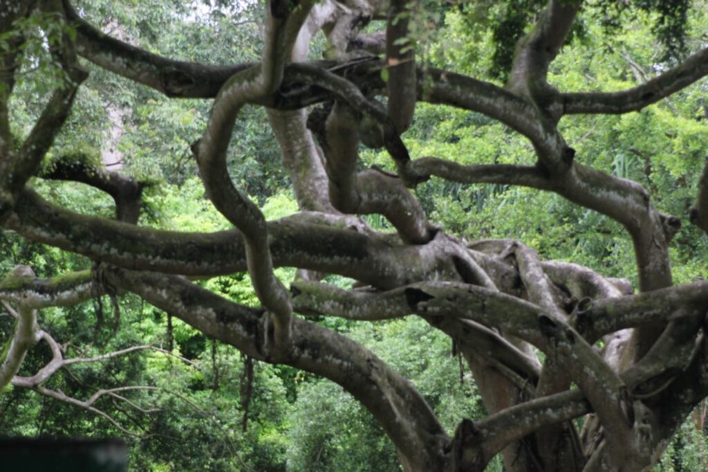 Later in the week, on Tuesday, we walked through the forest near Belforêt-en-Perche to find the Fontaine de la Herse. The site consisted of two landscaped basins ringed by six sandstone blocks; on two of them, Latin inscriptions translated as “To Aphrodite” and “Consecrated to the lower deities, to Venus, Mars and Mercury”. It was a small Gallo-Roman sanctuary in a clearing, its stones darkened by their time in the water. In the forest, rain nibbled at the leaves and the path softened underfoot. When we stopped by the side of the path, I noticed a heart-shaped patch of moss on a tree, a deer with wings on a waymarker and several stacks of cut logs waiting to be taken away. I wanted to roll the ends of those logs with ink and press them onto a large canvas, to see if I could keep their intricate rings forever if they were only going to be burnt or chomped into chippings. We ended the walk with chips and a beer, a hot, salty round off to all the green and grey.