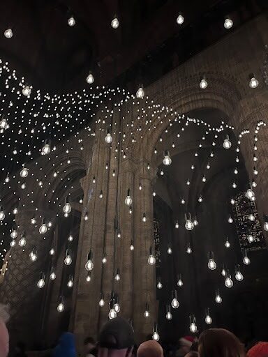 From there, we drove on to La Chapelle-Montligeon to see the Basilica of Notre-Dame de Montligeon, a muted stone structure set against open countryside. Inside, the space was high and white and full of gathered light. Nuns dressed in white moved quietly between the pews, a line of similarly dressed children followed. During our visit, a choir rehearsal filled the nave with children’s voices that rose easily into the vaulted ceiling. I didn’t understand the words, but the sound travelled along the ribs and arches of the building, and it was enough just to sit and listen.