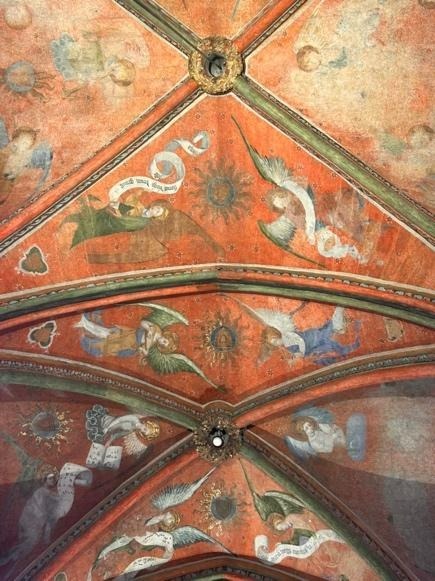 Inside Le Mans Cathedral, the great sixteenth-century organ anchored the space; light drifted in and glanced off its pipes so that it looked as though it were in a shimmer of shallow water. In one of the chapels, nine angels backed by red were painted high on the ceiling and we lit candles and thought about our loved ones: each of us held for a minute in our own small pool of light. We spent half an hour or so admiring the space until lunchtime where we ate pizza in the Place de la République. Then my dad led us through the backstreets to find Robert Doisneau’s 1962 photograph of a little girl and her teddy bear; above the arch, a toy bear in the window still stood in for the child frozen in the image.