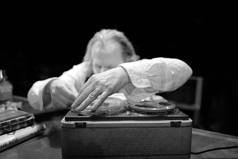 Historically, this tape recorder does hold significance beyond Oldman, being the same prop used in both John Hurt and Michael Gambon’s own performances of the play. In a way, just as Krapp is, Oldman himself is recording his own theatrical spool in this Beckettian catalogue, inevitably imparting a piece of himself onto its history. Just as much of Krapp’s Last Tape is autobiographical for Beckett, these gestures to the real world in the reused prop imply a personal connection between performer and character, between Oldman and Krapp.