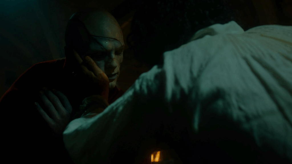 Del Toro’s Frankenstein strays with great purpose and intent from Shelley’s modern Prometheus. He tells a very old story, lights it in Caravaggesque chiaroscuro: the father who cannot bring himself to touch, the son who starves of his abstinence. Blood in fathomless amount coats the hands that tilt your face toward the light – but they cradled you, did they not?