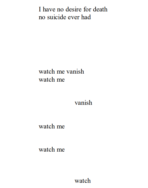 ‘It wasn’t for long, I wasn’t there long. But drinking bitter black coffee I catch that medicinal smell in a cloud of ancient tobacco and something touches me in that still place and a wound from two years ago opens like a cadaver and a long-buried shame roars its foul decaying grief.’ – 4:48 Psychosis